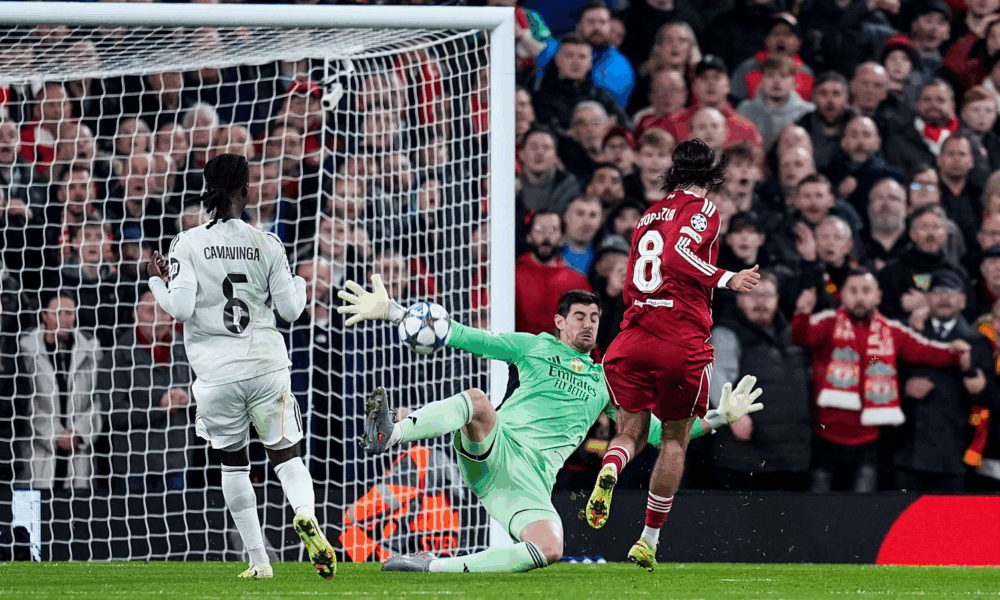 ¿Quién podía ser el protagonista? Pues un testarudo Szoboszlai que puso un centro tenso para que Mac Allister tradujese la autoridad en dominio en el marcador. Mac Allister planeó como un halcón para batir a Courtois, que, con todo, rozó el balón. Llegó entonces la llamada a los grandes hombres como Mbappé que estaban con el cartel de ‘desaparecidos’. ¿Quién respondió? Pues el único que realmente compareció en Anfield. Un magnánimo portero que ha cambiado la historia moderna de un Madrid que volvió a ser vulnerable en una cita de altura.