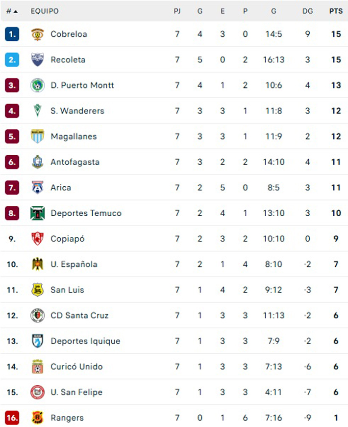 Deportes Recoleta fue a ganar a Copiapó y alcanzó a Cobreloa en el primer lugar de la Tabla con 15 puntos. En la parte baja de la tabla, Rangers es cada vez más colista con apenas un punto