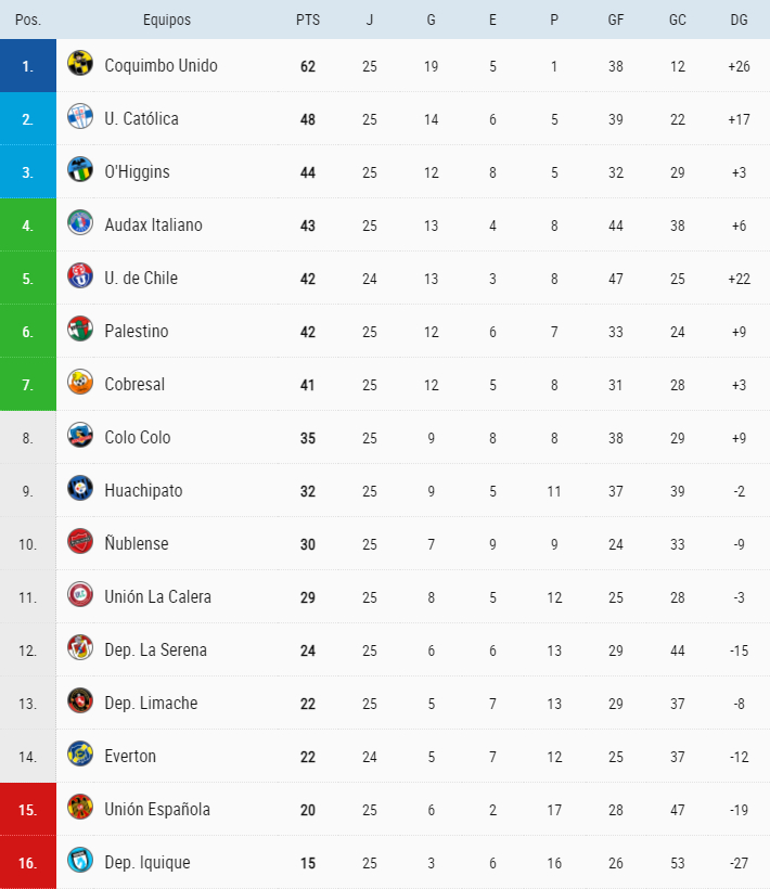 El empate 2-2 en el estadio Nacional dejó a Colo Colo a seis puntos de Cobresal, el equipo al que tiene que bajar para entrar a Copa Sudamericana. Mientras tanto los tomateros sacaron un cuerpo más de luz sobre Unión Española y Deportes Iquique